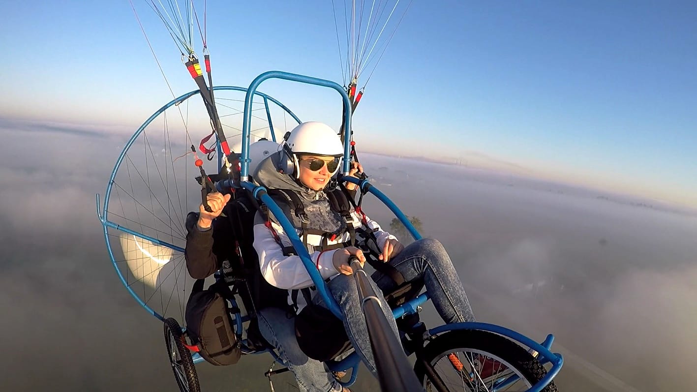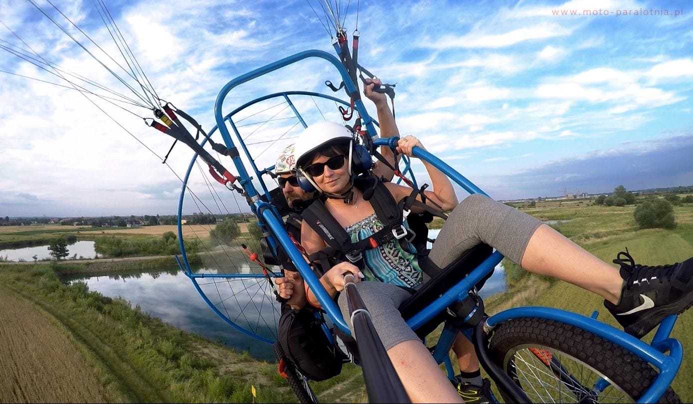 Każdy ze sportów lotniczych dostarczy Ci dawki adrenaliny na różnym poziomie. W paralotniarstwie tandem z silnikiem spalinowym startujesz z ziemi. Razem z instruktorem przypięci jesteście do „wózka”, który zapewni Ci maksimum komfortu. Lot trwa 15 minut i jeśli wybierzesz opcję z filmowaniem będziesz mógł przeżyć swoją przygodę na nowo. Film z HD z jednej kamery. Loty odbywają się od kwietnia do października. Warunki atmosferyczne są przeciwwskazaniem do wykonania lotu.