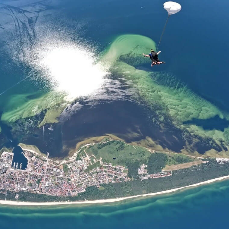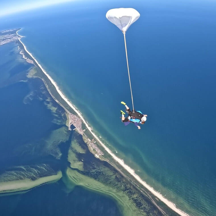 Skok ze spadochronem nad morzem to zupełnie inny poziom emocji. Widoki na Bałtyk robią ogromne wrażenie i zostają w głowie na długo