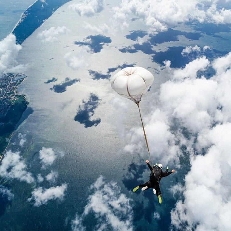 Wykorzystywany sprzęt spadochronowy to certyfikowane systemy przeznaczone do skoków tandemowych. Każdy element wyposażenia podlega regularnym przeglądom, serwisowi oraz kontroli technicznej, co jest standardem w profesjonalnych operacjach lotniczych. Dzięki temu uczestnik nie musi zastanawiać się nad zapleczem technicznym – może skupić się wyłącznie na samym doświadczeniu.