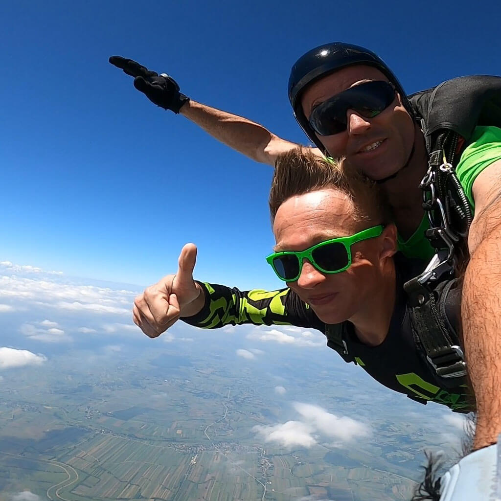 Świetna ekipa i bardzo dobra atmosfera. Instruktor wprowadza spokój i pewność, co jest kluczowe przed skokiem. Emocje podczas spadania są nie do opisania.